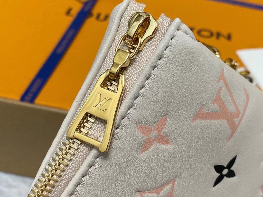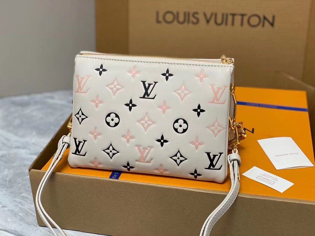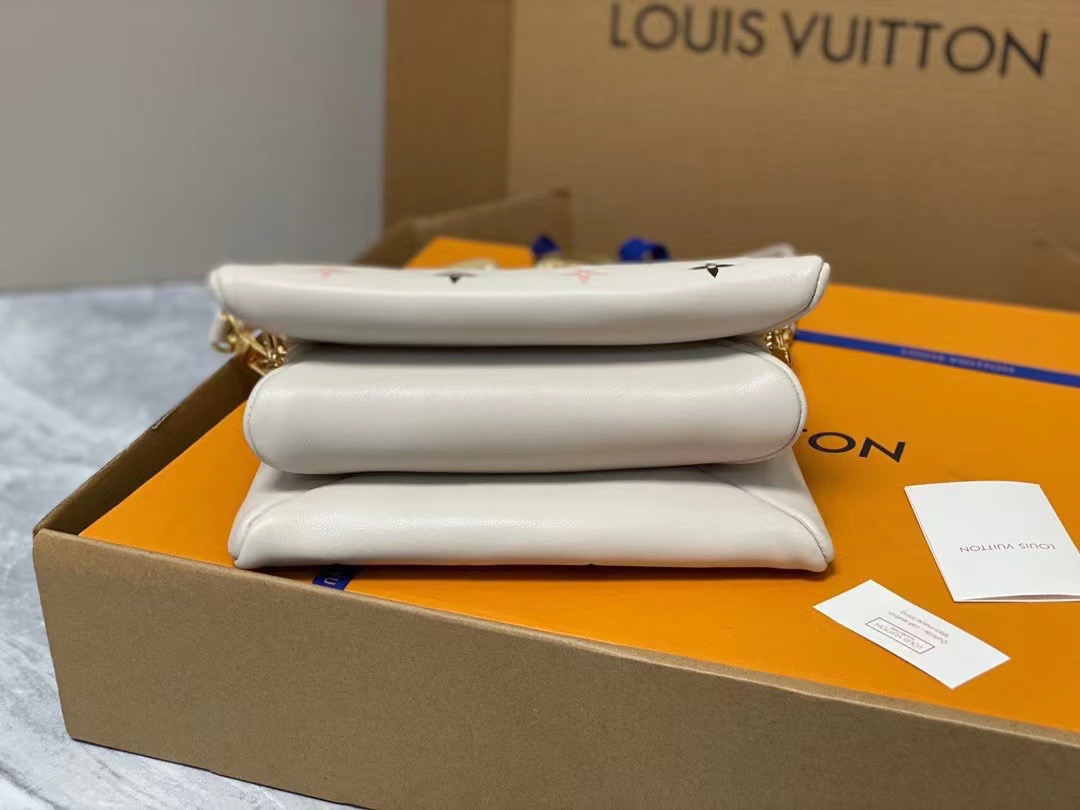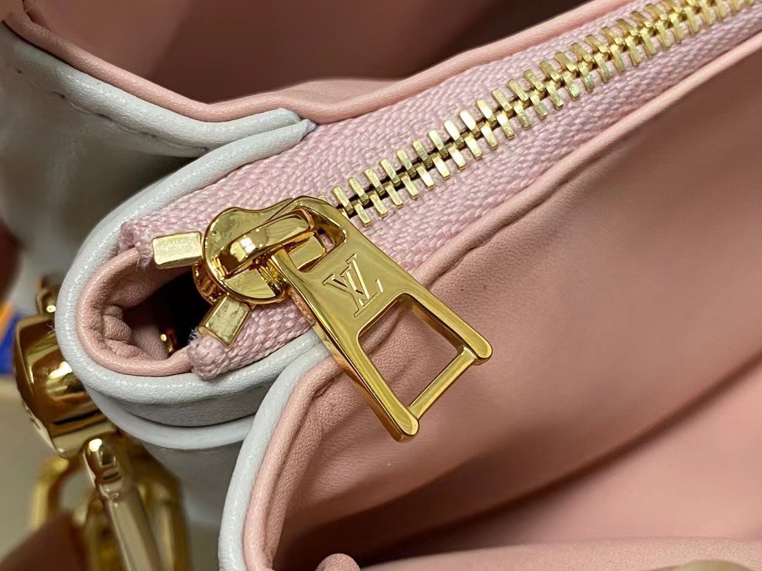 The new season in the P880 m22954 white full leather chain bag series, the Cousin bb handbag, the Cousin bb tricolor handbag, has emerged in soft colors this summer. Sheepskin leather is embossed with a Monogram pattern, woven into the chain by the pool of silk scarves, bringing a trendy atmosphere to your face. Removable and adjustable leather shoulder straps add styling options. Detailed features 20 x 16 x 7 cm.
