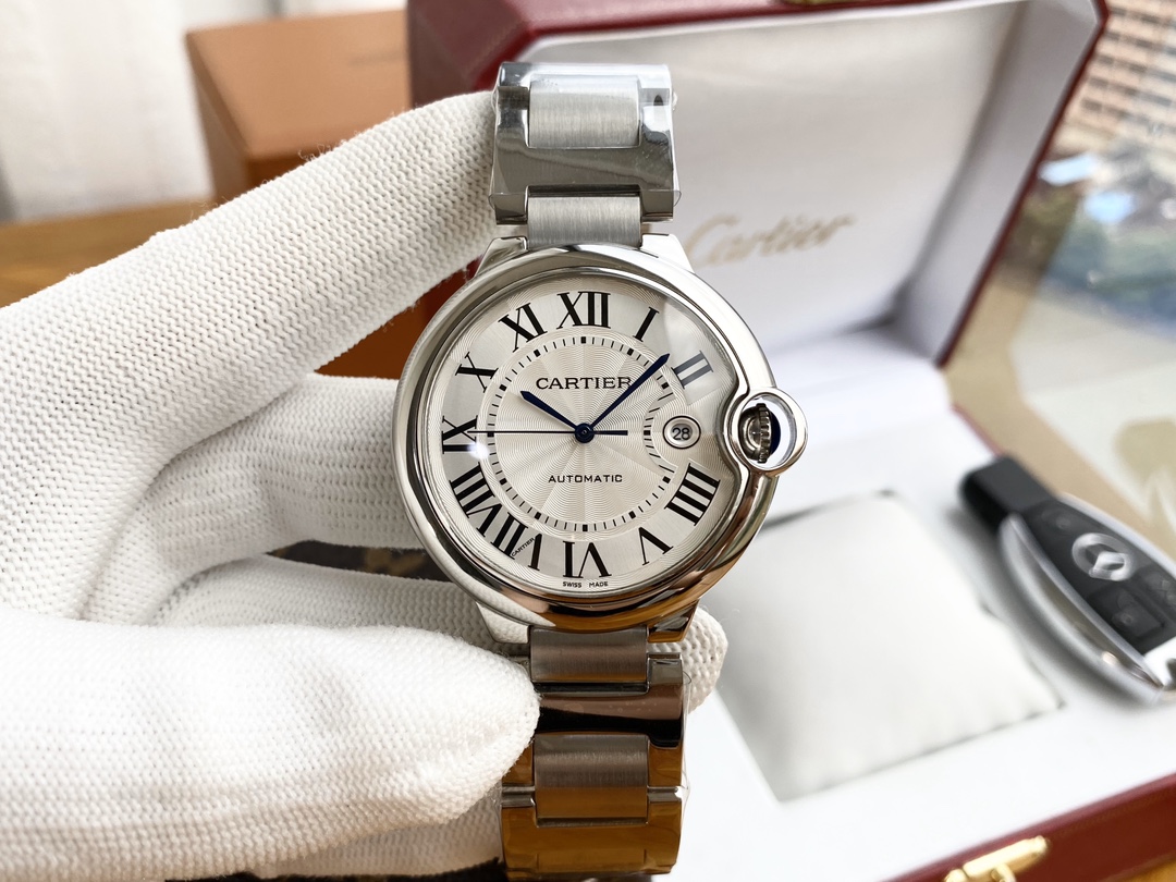 Detailwatch 💰 Cartier 🎉 Blue balloon men's watch fully automatic mechanical movement 316 precision steel case high-definition mineral mirror imported calf leather strap with a diameter of 42mm and a thickness of 11mm ⚠ The male spirit represented by this watch is integrity, perseverance, fearlessness, and loyalty to oneself. Whether it is for formal occasions or daily outings, it is worn on the wrist, showcasing a natural demeanor and gentlemanly demeanor.