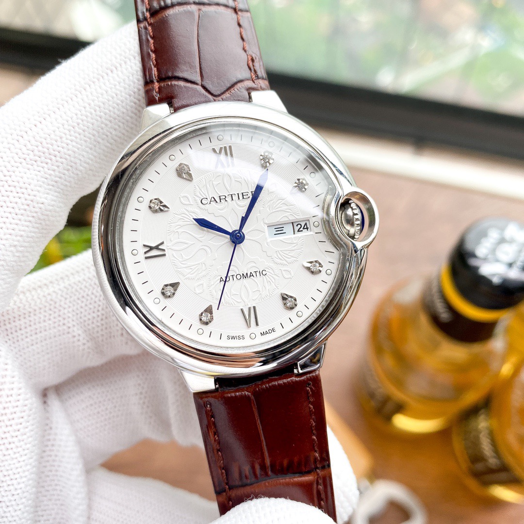 Brand: Cartier 🏅🏅 Type: Men's Watch 🎉🎉 Case cover: top-level version 316 precision steel l strap: imported calf leather strap movement: fully automatic imported mechanical movement ⚙️ Mirror surface: mineral scratch resistant Mirror surface glass size: diameter 42mm, thickness 12mm 🍷 Exquisite inheritance of true effects, quality assurance Elegant style instantly captures the charm of men, and is a symbol of taste and dignity in life!