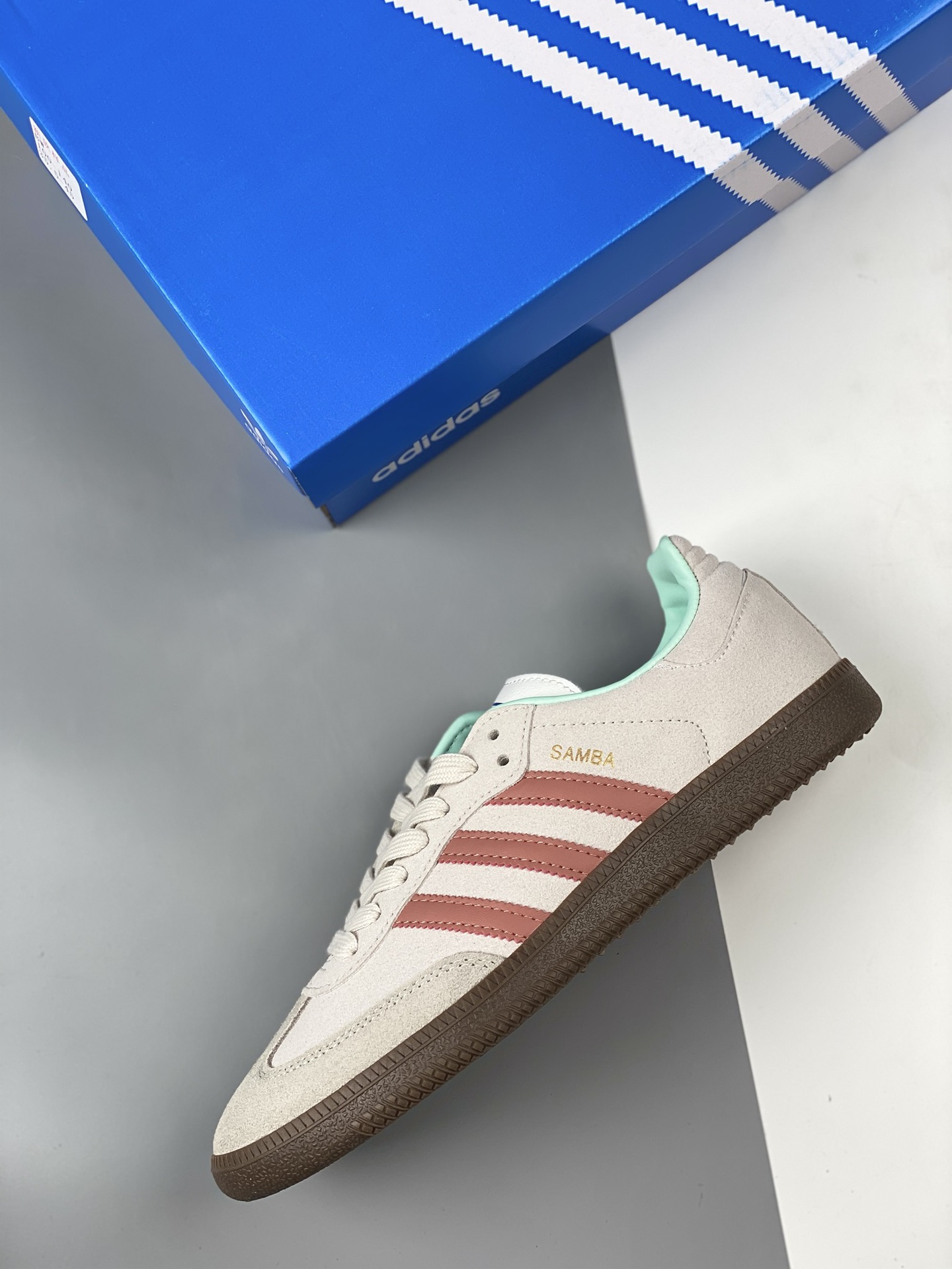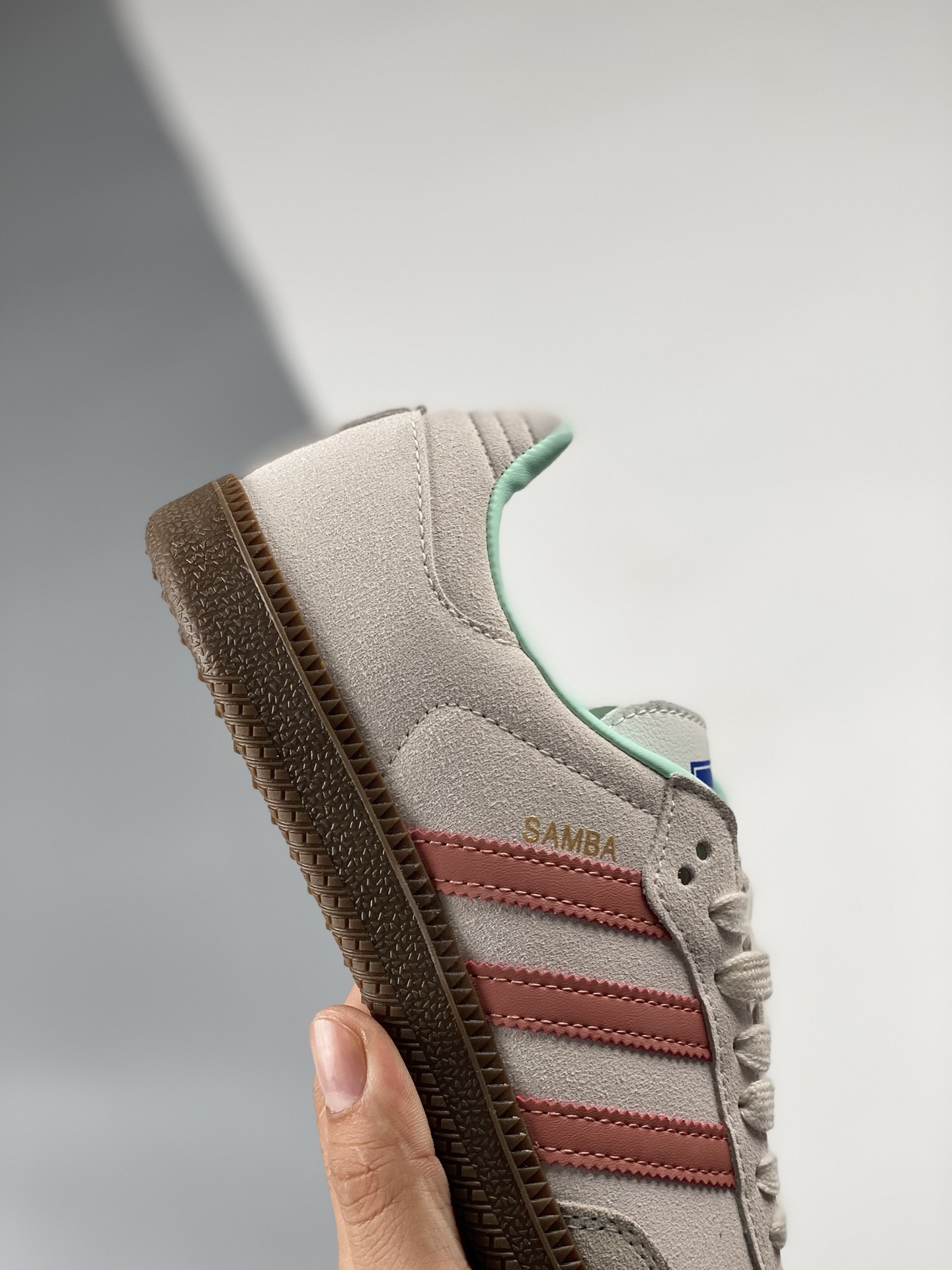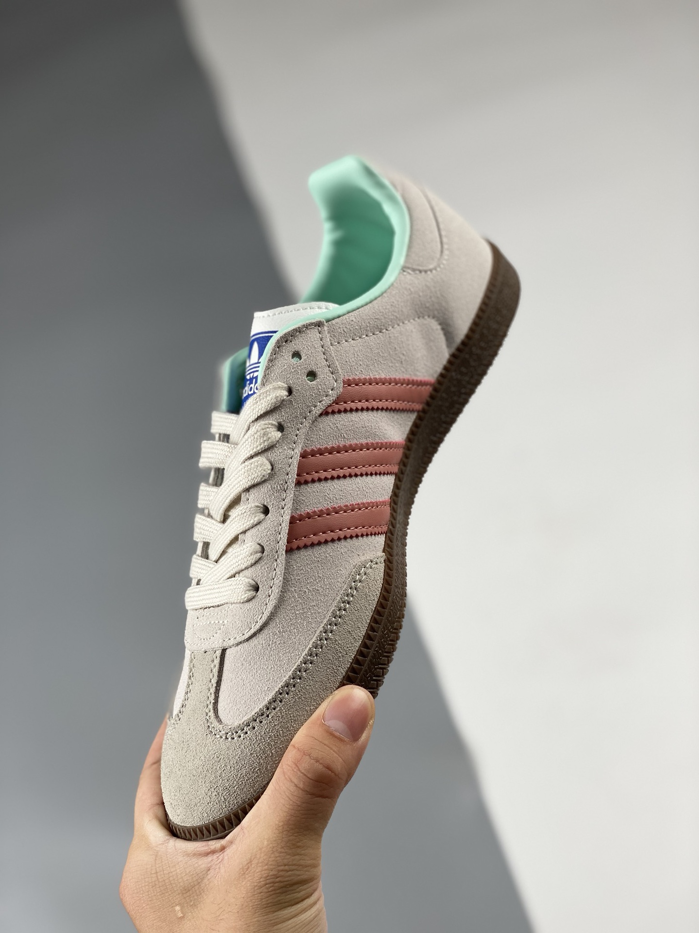 Adidas samba og Three Leaf Grass Ash Powder Tiffany's Cost Performance Ratio Ceiling First Trial Edition Samba Anniversary Series Differentiation Market Fake Leather Currency Adidas Classic samba og Made in the Last 70 Years, Original Full Layer Production ♨ Super soft top layer leather eliminates inferior imitation leather ‼ The slender shoe last, slightly pointed toe, and suede toe stitching are all elements that we can see, which are the soul of Samba's design. Product number: id2047