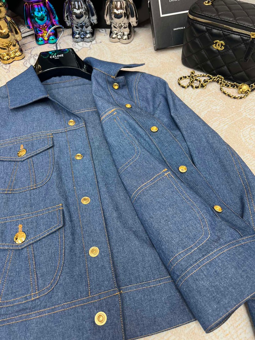 Home / Women's Clothing / New Celin 2023 Pre Autumn New Double Pocket Metal Buckle Thin Denim Shirt