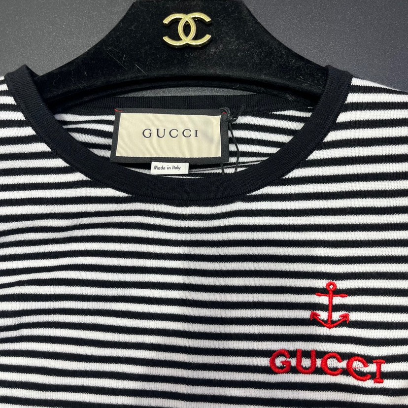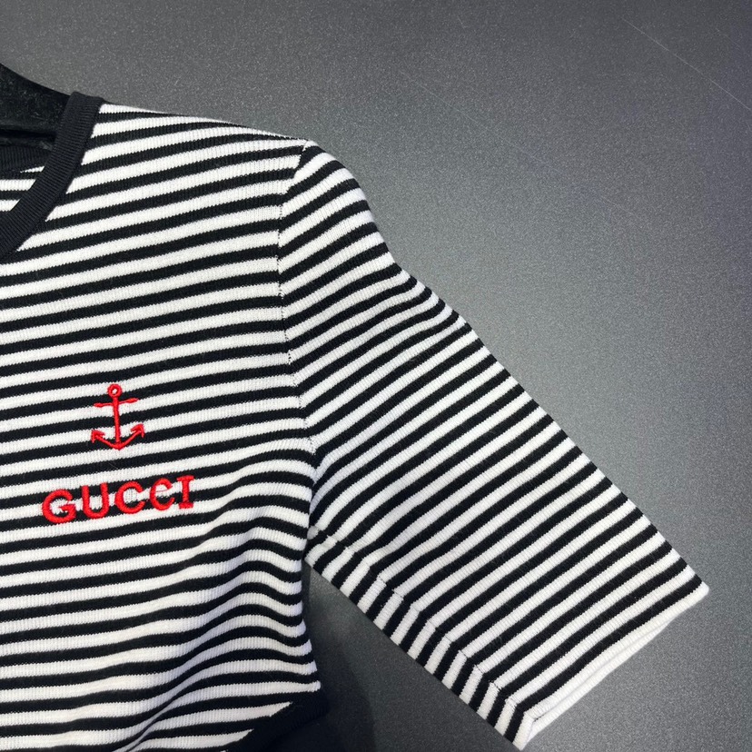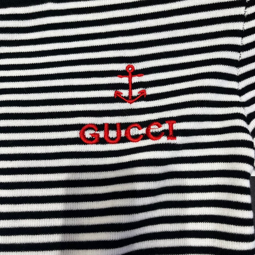 New Gucci 23 Spring/Summer New Contrast Stripe Hollow Waist Letter Knit Dress
