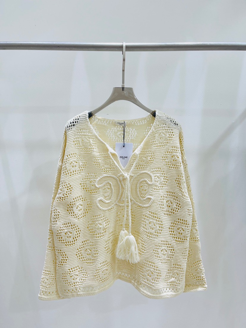 • New Celine Early Autumn New V-Neck Triumphal Hollow Tassel Knit Top