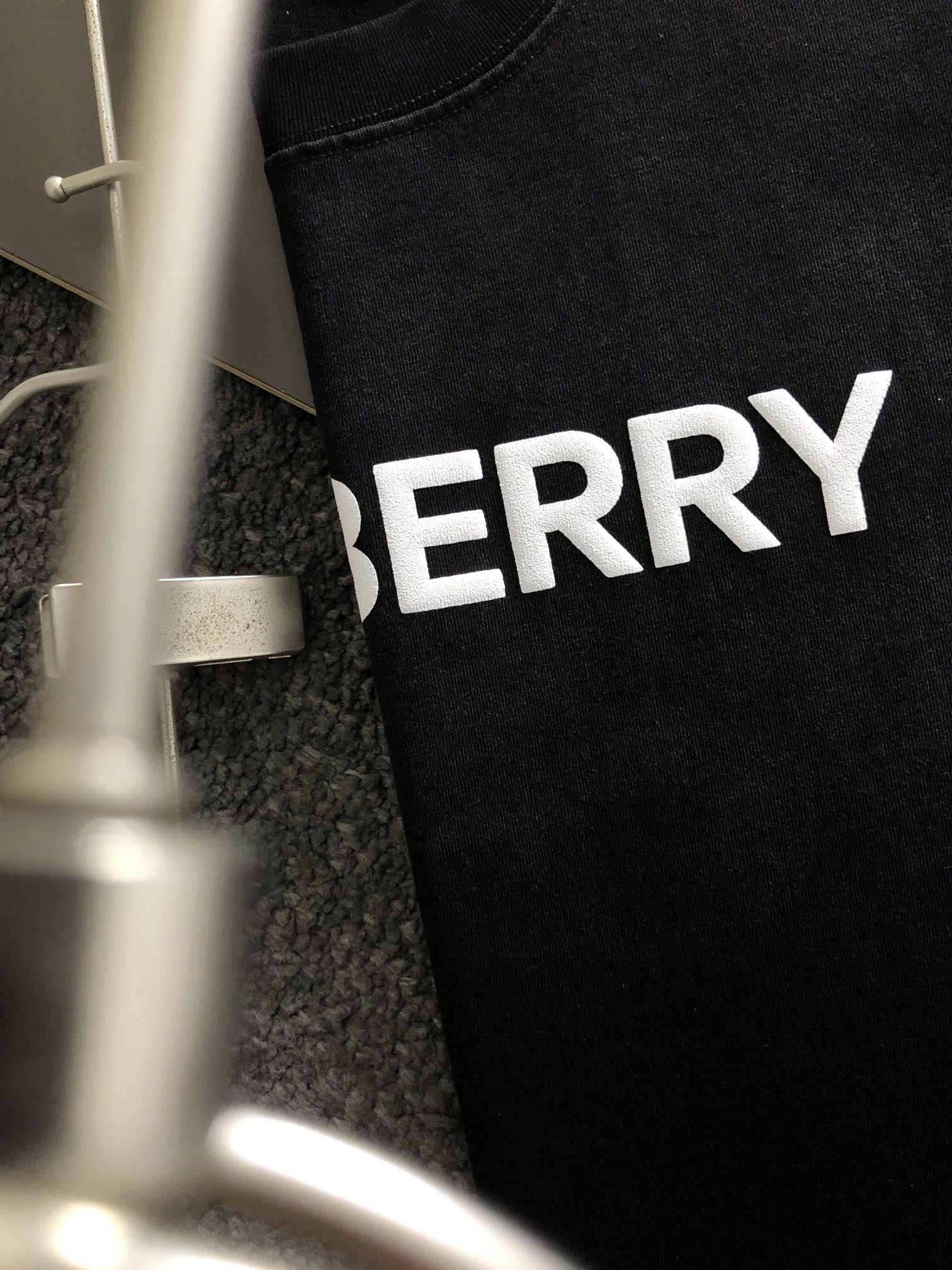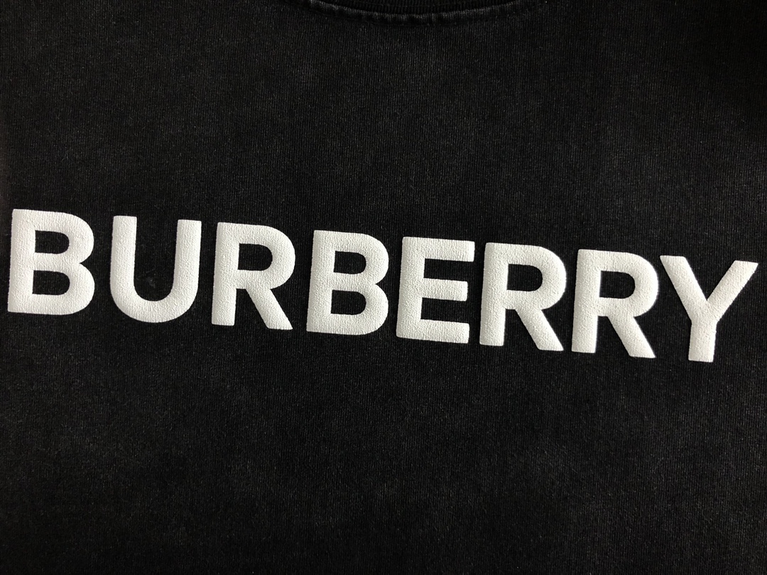 • New   Burberry Top grade black retro washed and printed trendy brand counter short sleeved